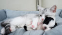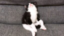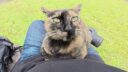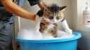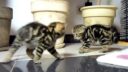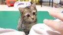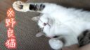そこへ他の猫も登場しました。この子はわりとすんなりと氷に近づいて匂いを嗅いでいます。