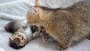 手で転がそうとしたりしていましたが結局は氷を美味しそうに舐め続けて水分補給をしています。冷たい感触がきっと心地よく美味しく感じられるのでしょうね。