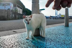 普通なら鬱陶しいニャ!と嫌がってもおかしくないのですが、この猫ちゃんは微動だにせず。