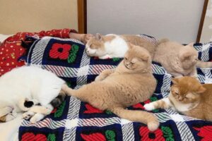 猫たちも美しい音色が子守唄のかわりになっているのでしょう。こんなところで昼寝というのもなんとも贅沢な猫さんたちです。
