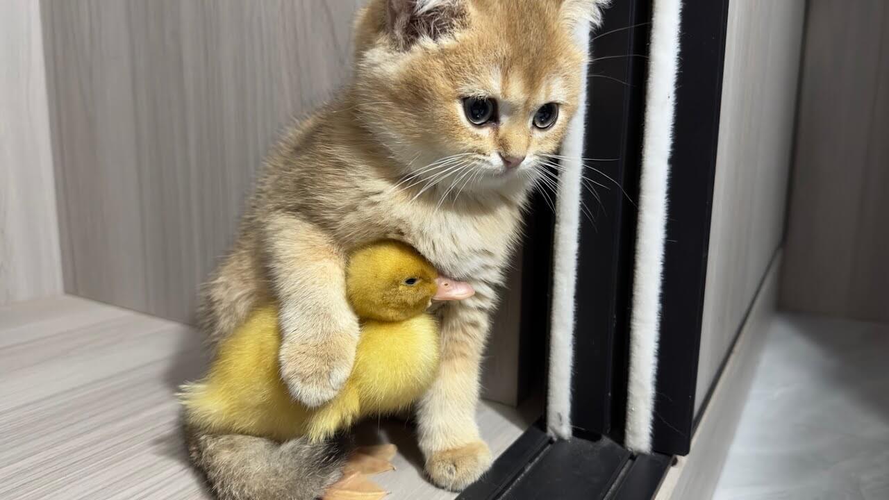 今回ご紹介するのはアヒルの子に戸惑う子猫ちゃんです。