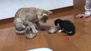 他の猫が食べているほうが美味しそうだにゃの子猫さん