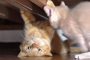 お母さん猫にぴったり寄り添う可愛い子猫兄弟