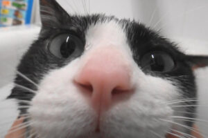 こればっかりは回数を重ねて慣れてもらうしかありません。そこへ堂々たる風貌のパパ猫が登場します。