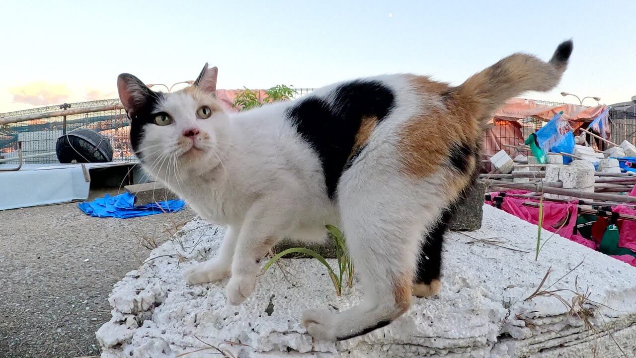 過酷なお外猫の三毛猫さんは、いつも人恋しいという現実に心がキュッとしてしまいます。