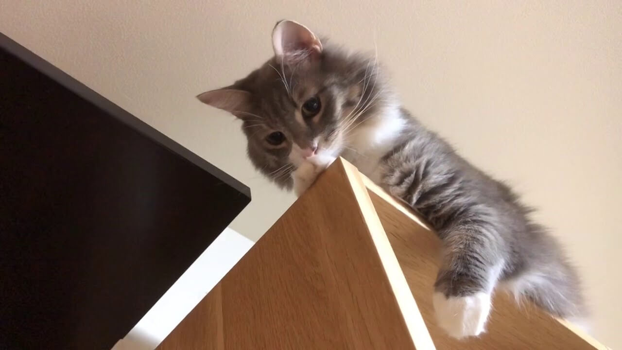 こんなところから上へ登っていけるニャ!と恐る恐るキャットウォークに挑む様子が可愛らしいのでご覧ください。