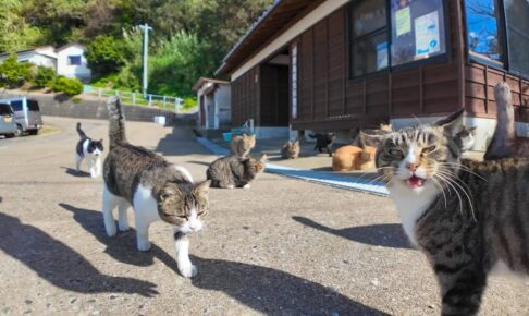 予想を遥かに超えるおびただしい数の猫さんたちです。頭を撫でてあげると嬉しそうに鳴き声をあげながら、それぞれが歓迎してくれるところが可愛いですね。