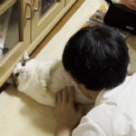 飼い主さんに甘える姿が愛らしい母猫でした。