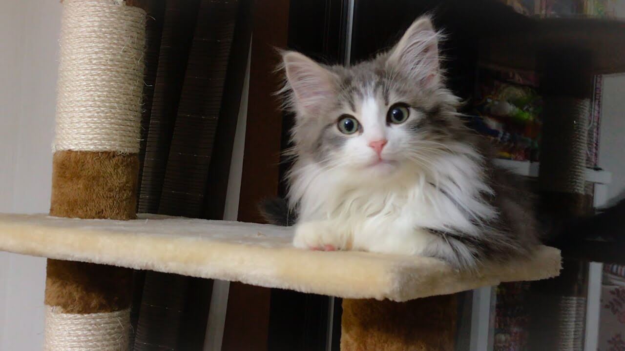 キャットタワーでくつろぐノルウェージャンフォレストキャットの子猫が可愛すぎる件