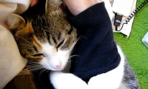 というのも猫ちゃんが一生懸命しがみつき、この腕は放さないニャ!と頑張っていたからでした。