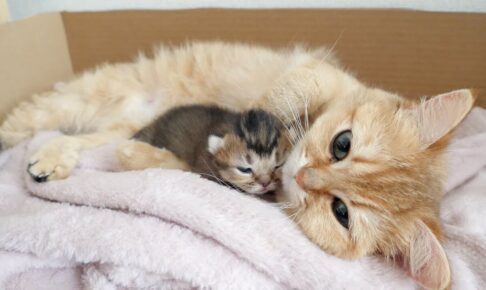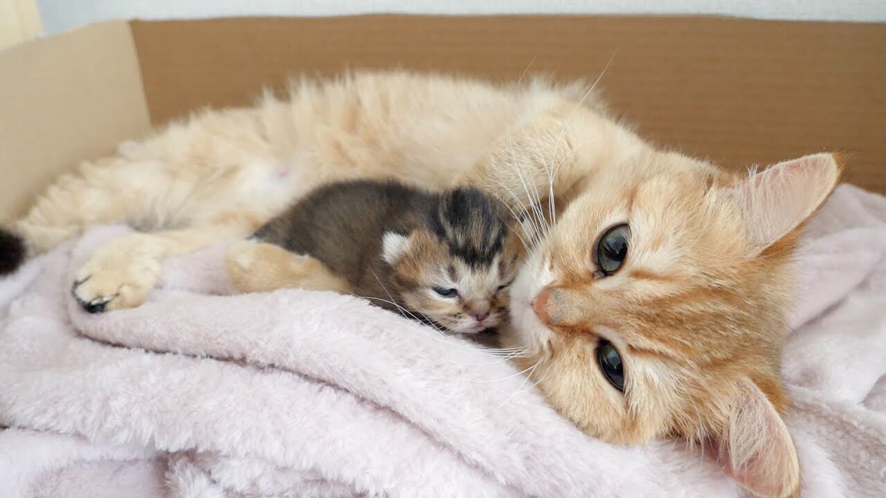 赤ちゃん猫のお世話をしている時の幸せそうな表情が微笑ましいのでご覧ください。