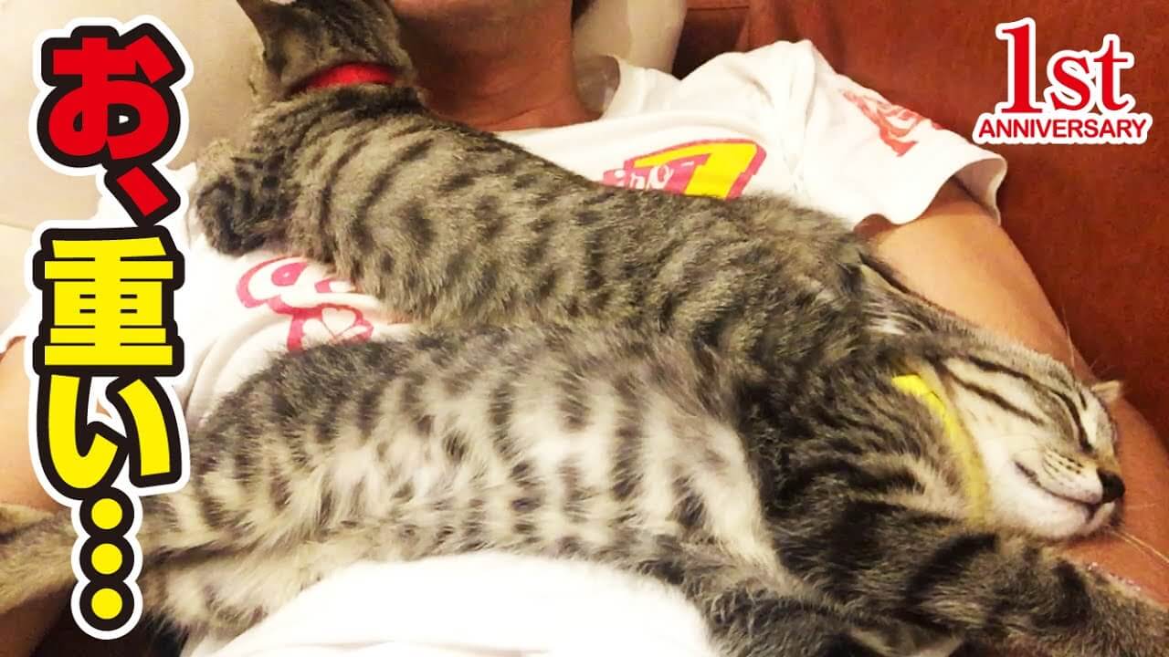 お父さんの上で昼寝するのがお気に入りな子猫兄弟