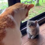 こうしてお家に馴染んだ後、先住猫のポムちゃんとご対面させてみました。