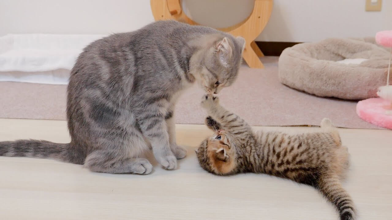 お母さん猫に早く寝なさい!と叱られてもへっちゃらな子猫