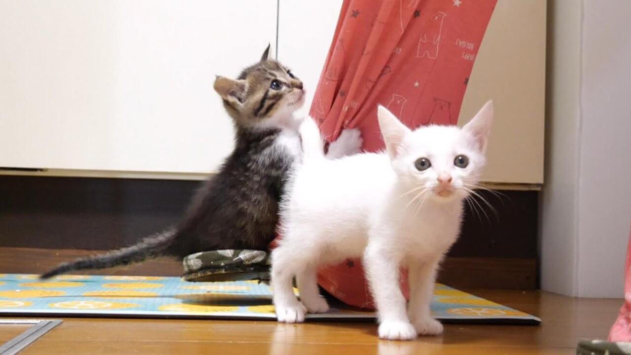 二匹仲良く食べる姿が微笑ましい子猫ちゃん達でした。