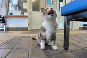 飼い主さんの膝に乗ったり、肩に手を置いて遊んでほしそうにアピールを始める子猫たちの様子も可愛かったですし、撮影しているカメラをじっと見つめて興味深そうにしている子猫たちの表情が印象的でした。