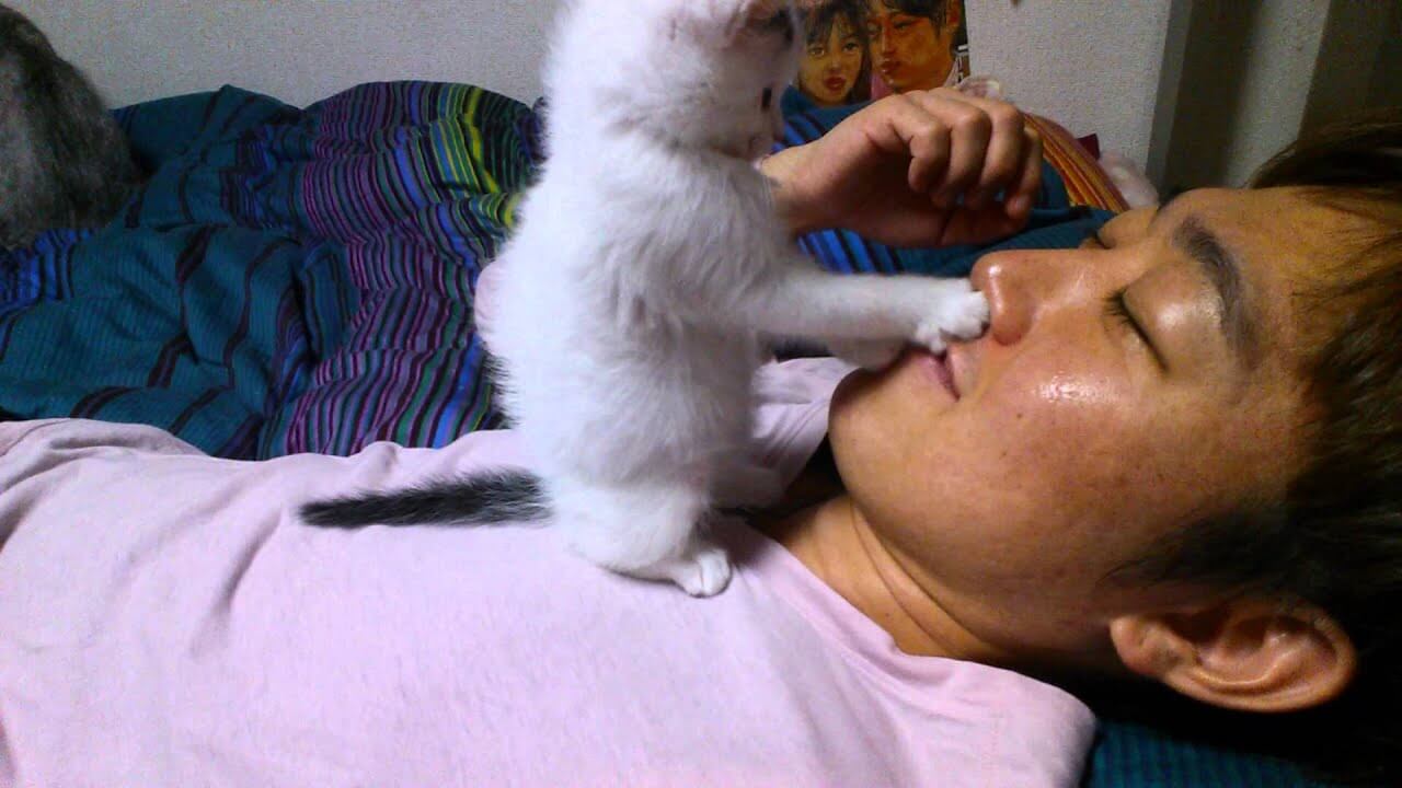 今回ご紹介するのは飼い主さんの顔にジャレつく子猫ちゃんです。