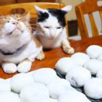 前足でふれると飾りは揺れ動きますし、楽しいんでしょうね。