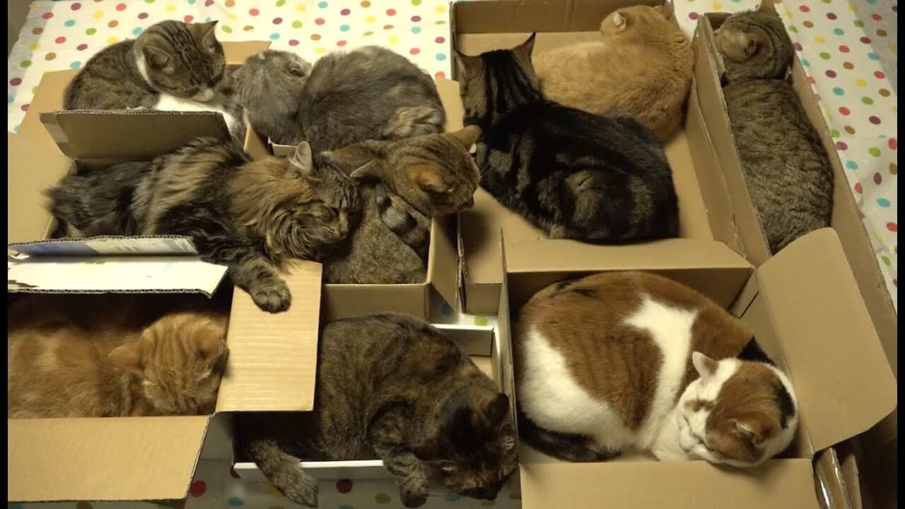 こちらでは10匹もの猫ちゃんを飼っているのですが、みんなダンボール箱に夢中の模様。