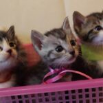 離乳食を食べたあとのミルクに順番待ちする子猫たち