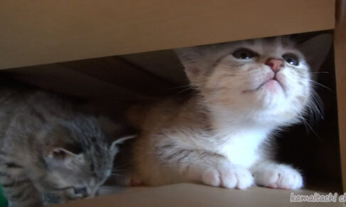 今回ご紹介するのは机下に出来た狭い収納で過ごす子猫ちゃん達です。