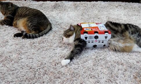 ビールの箱に興味のない妹猫