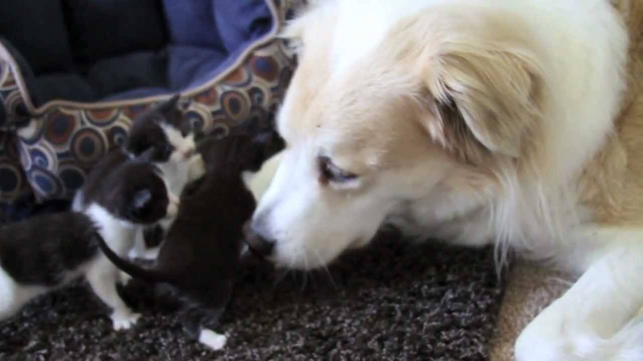 大型犬のマーキンが保護された赤ちゃん猫たちのお母さん代わりとして日々奮闘しているようです。