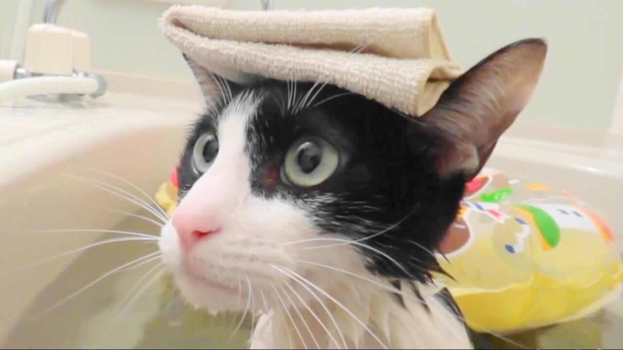最初は猫ちゃんの身体を洗うシーンから始まります。