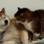 圧倒的に仔犬のほうが子猫よりも大きいので子猫には勝ち目がなさそうに見えます。