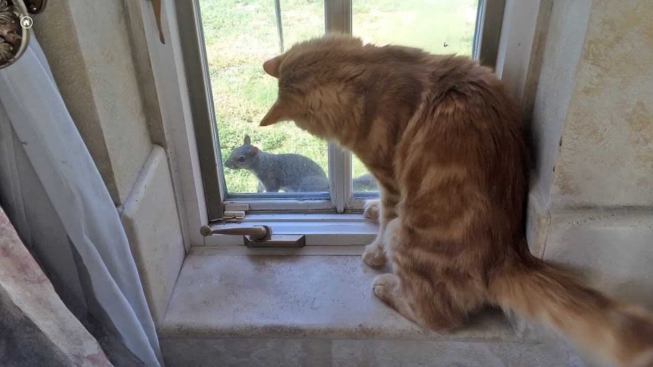 このリスに猫のジャックは、もういてもたってもいられない状態になっていたようです。リスはジャックのことをおちょくるかのように、わざと窓のそばでまったりとして見せているのです。