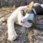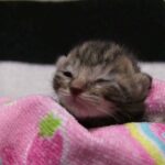 子猫のひのきが箱座りが崩れたような格好のまま寝ていました。ふと目を覚ました時に飼い主さんがすぐ近くにいたのですっかり目が覚めてしまったようです。