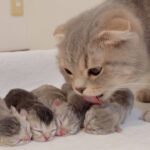 お父さんの膝の上で甘えてぺろぺろしている子猫のにじまるくん。手のひらサイズのおちびちゃんでとっても可愛らしい子です。