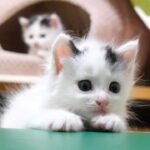 しばし距離を置き、赤ちゃん猫達を見つめる様子が微笑ましいのでご覧ください。
