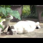 子猫たちは途中で、お母さんのほうにやってきて、おかあしゃんからもごはんを早く用意してって、お父さんに言ってにゃ〜とお願いしているようです。全く可愛い子猫たちです。