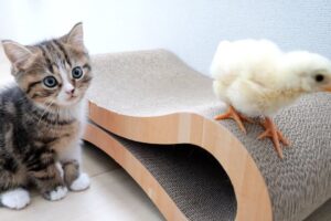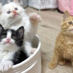 箱から出てきたどんこはお母さんにつかまって膝の上に乗せられて爪切りしてもらっています。おとなしく爪切りさせてくれるどんこはとても良い子ですね。