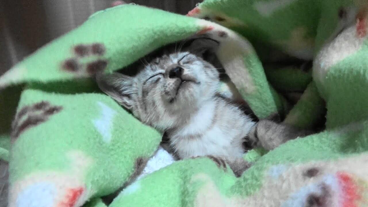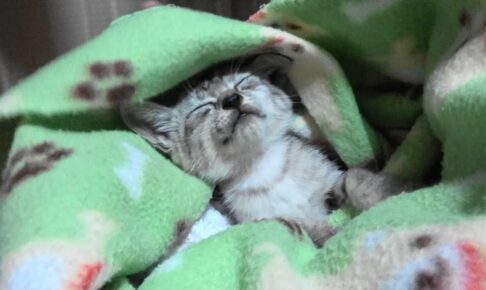 ごはんを与えると、これもしっかり食べてくれて、そのあとは一気に疲れがでたのかそのまますやすやと眠りはじめてしまいました。子猫にとっては大変な1日になりました。ゆっくりおやすみ〜