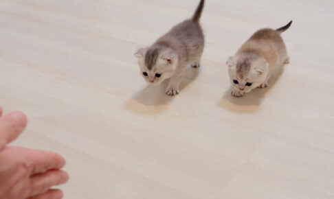 よちよち歩きだったブリティッシュショートヘアの子猫たちが、よくやく上手に歩けるようになってきました。
