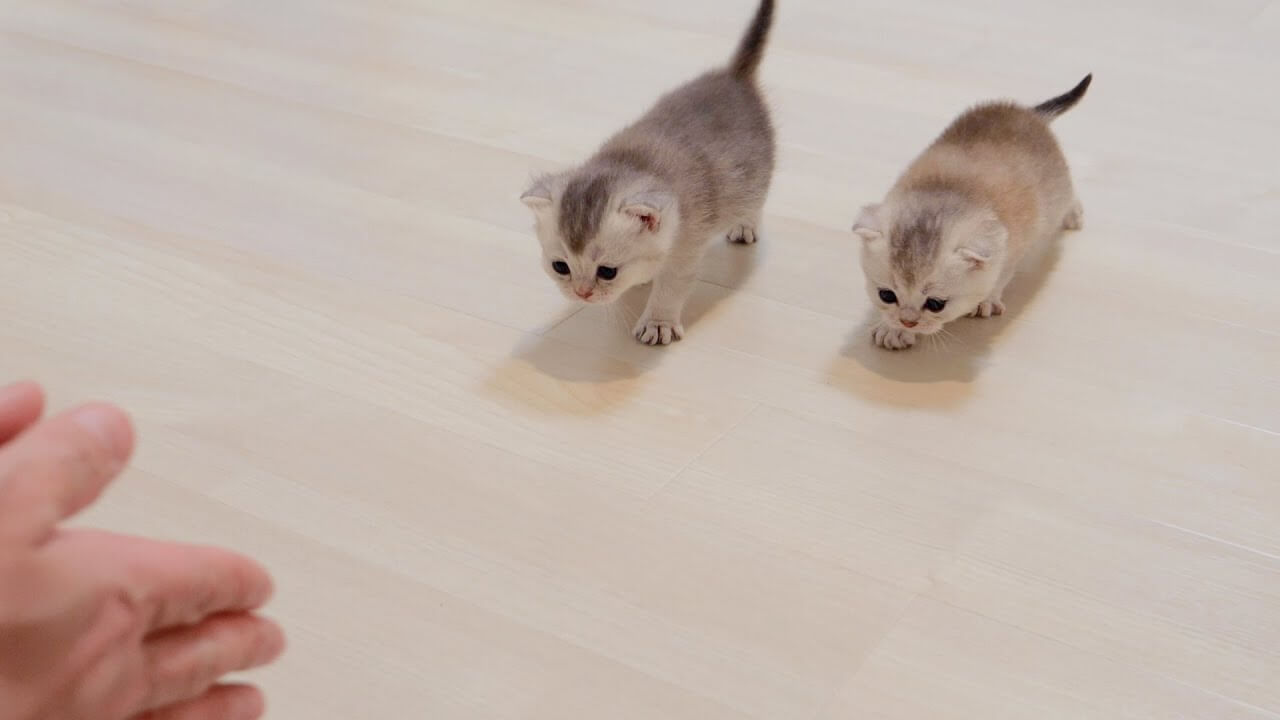 お父さんが子猫たちの名前を呼ぶと、ガニ股になりながら急いでお父さんのほうへ駆け寄っていく子猫の後ろ姿が可愛すぎます。