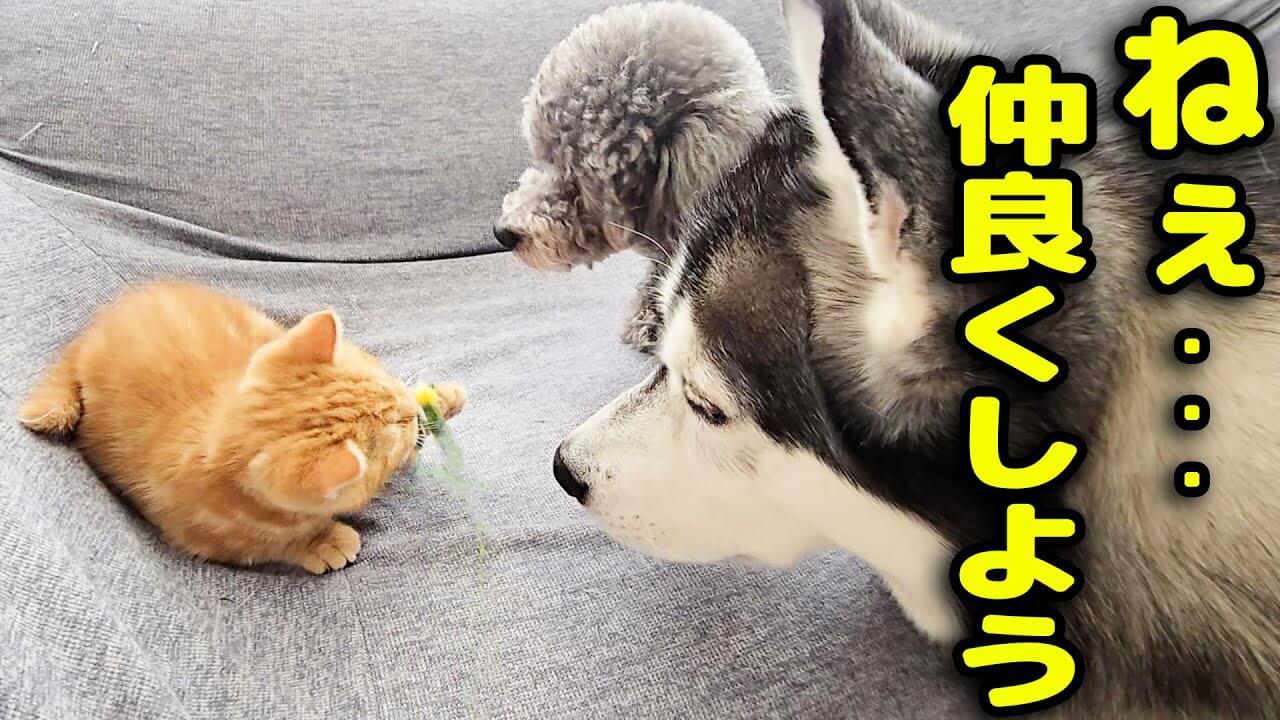 今回ご紹介するのは新入り子猫と先住ペット達との顔合わせシーンです。