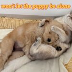 一人残らず、お母さんの膝の上に登ってギュウギュウになりながらもとても嬉しそうにしている子猫たちですが、これではお母さんもおちおち化粧をすることができませんね〜。