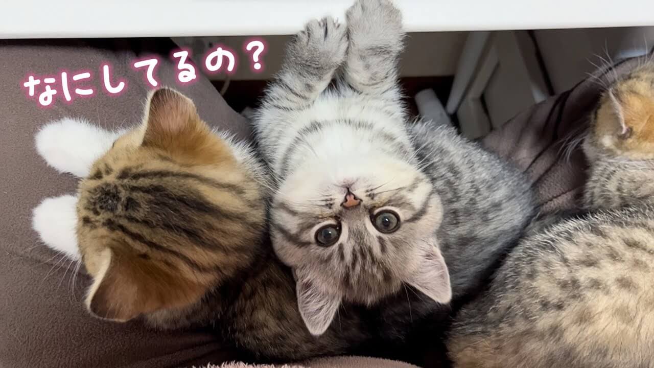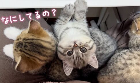 お母さんが化粧していたら子猫たちが次々と膝によじ登ってきた〜