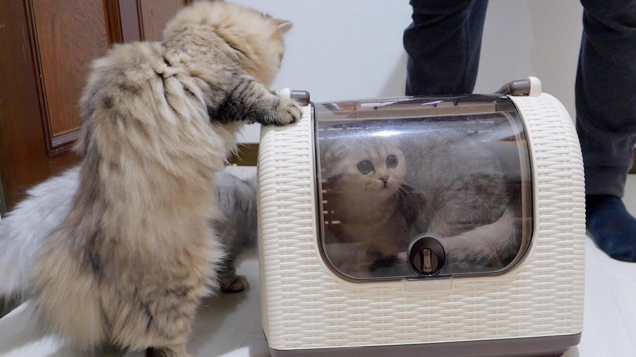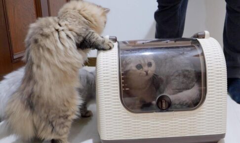 ようやくキャリーのなかにミラを入れることができましたが、他の猫たちがミラのことを心配して続々と集まってきてキャリーの周りは大混雑になってしまいました