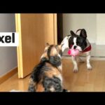 一方で、子猫の豆大福もまた同じです。飼い主さんの足の間にはまりこんでくつろいでいる豆大福でしたが、目が少しずつ閉じてきているなと思ったら、やっぱり次の瞬間にはコテ!と寝てしまうのです。