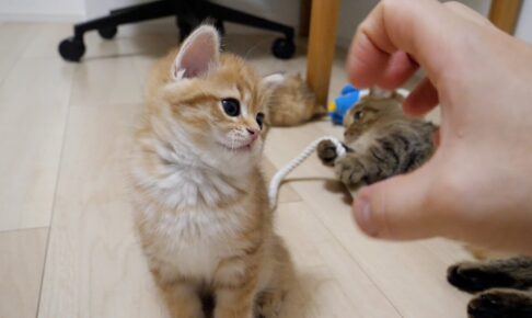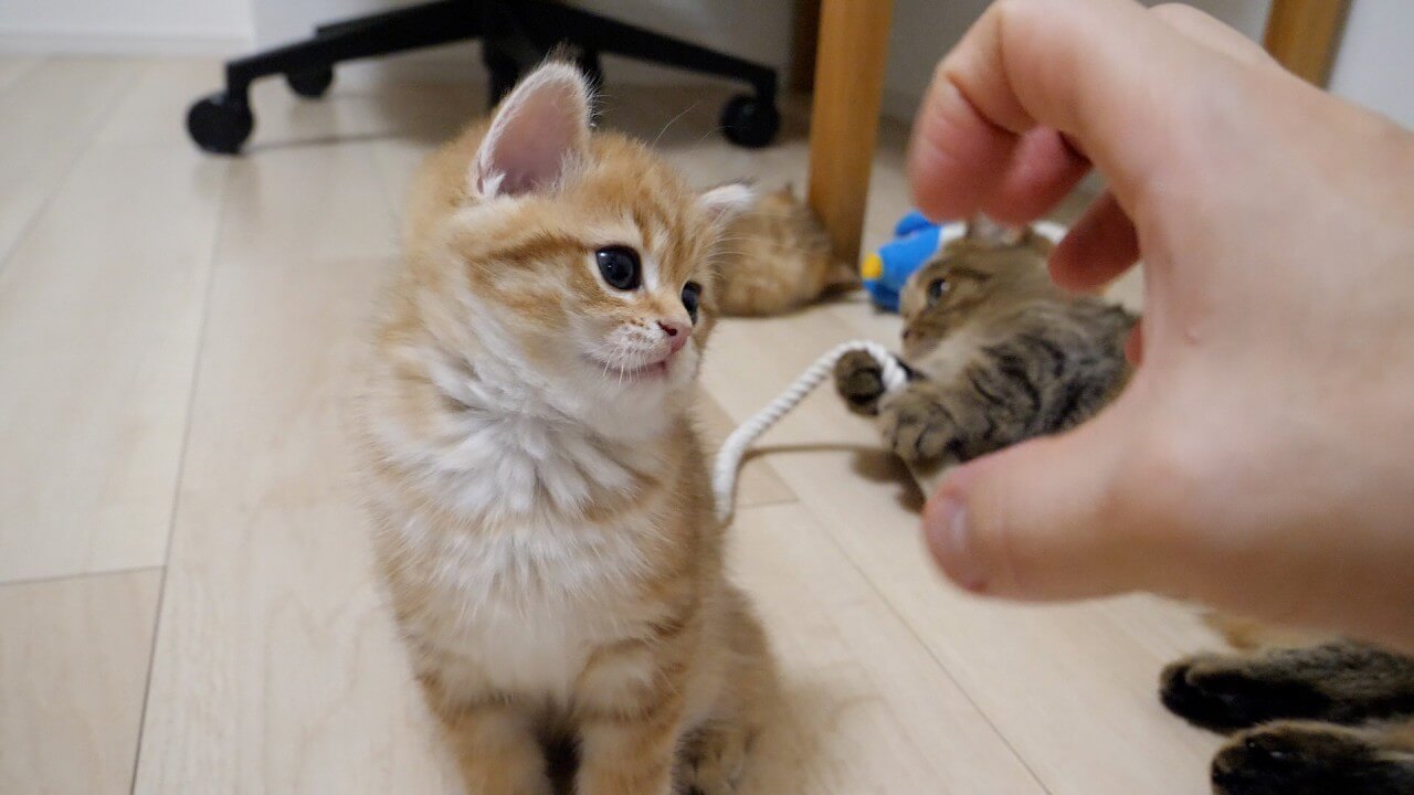飼い主さんが手を近づけると子猫ちゃんは嬉しそうに反応。