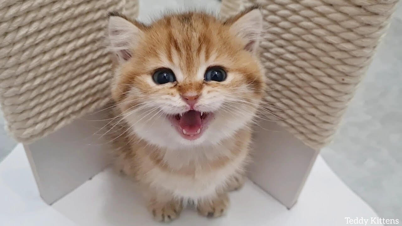 まだキトゥンブルーの目の色をしている可愛い子猫が飼い主さんの優しい語りかけに対して、天使のように可愛すぎる反応をしてくれます。