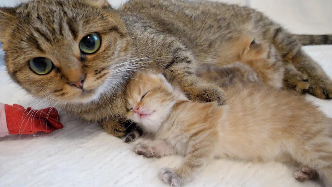 半目で爆睡中の子猫が心配でみんな集まってきてしまいました
