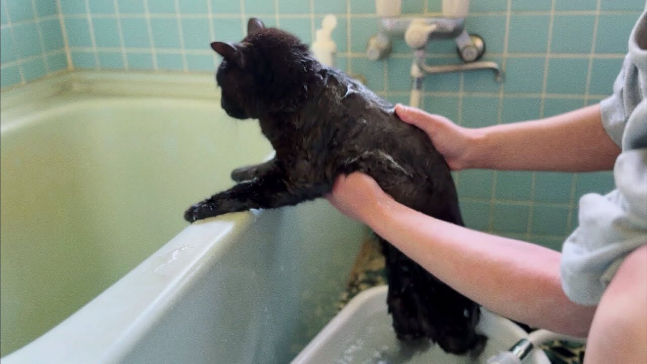 天は野生の猫さんではありませんからお風呂で綺麗にしてもらわないとだめですね。お風呂に入れられている天を心配して柴犬のももや猫の空が風呂場をのぞきにやってきます。