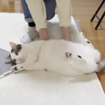ここまでされては撮影者さんもスルーするわけにはいかず、ハチワレ猫ちゃんをナデナデ。