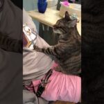 娘猫の方も飼い主さんから離れようとしなかったり、周囲を何度も見渡したりと警戒している模様。