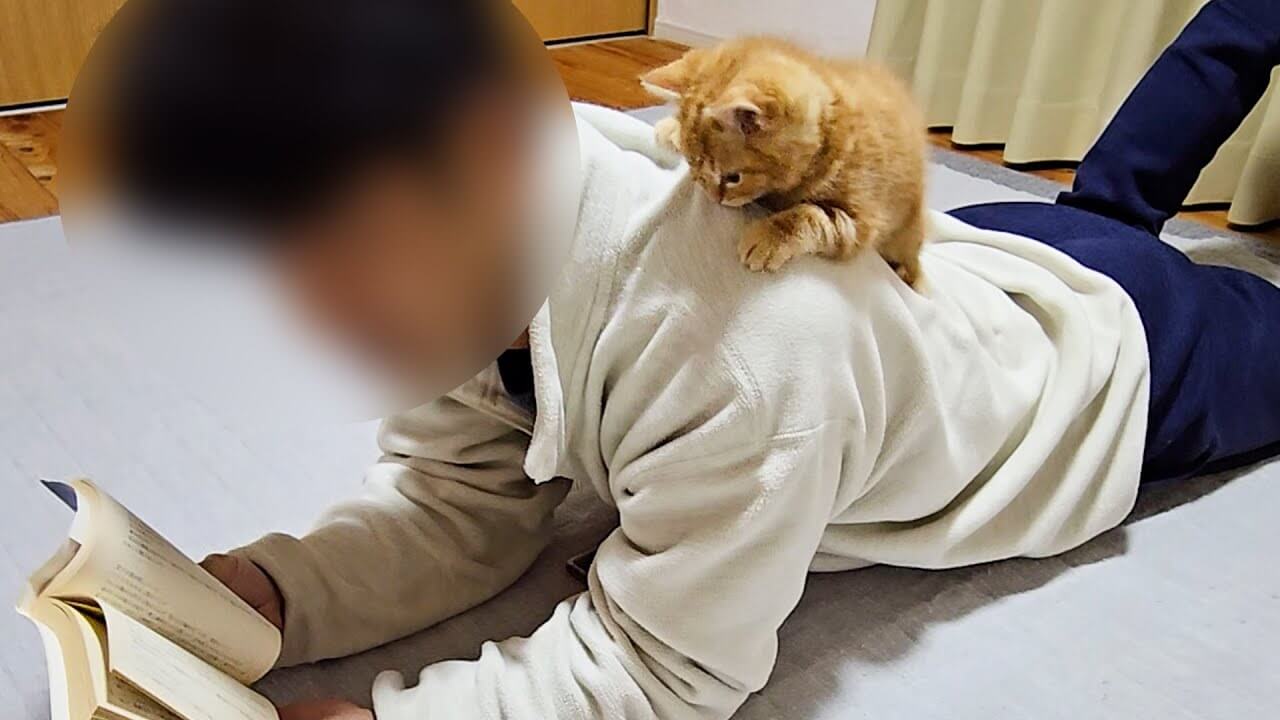 ごはんを食べ終わったら、先住猫や先住犬たちとご対面して一緒にプレイタイムを堪能します。お父さんはその間、ゆっくり読書をしたいのですが邪魔されてしまうので無理そうです。